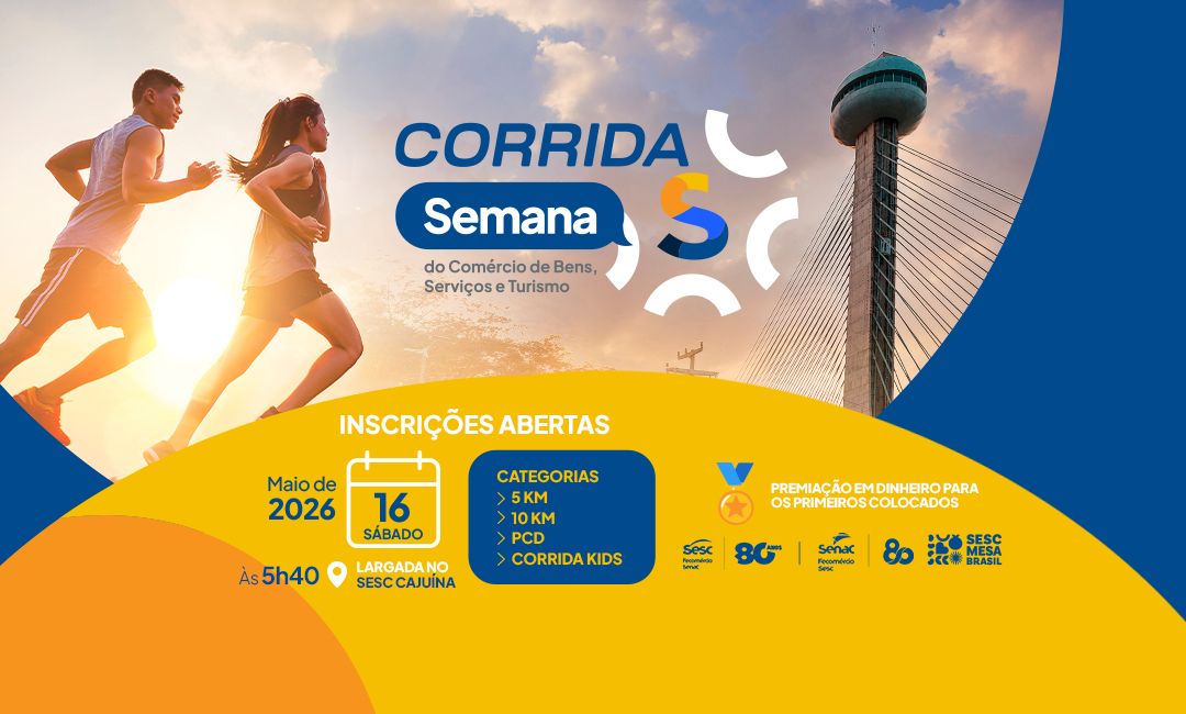 A 2026 Corrida de Rua Semana S será realizada no dia 16 de maio de 2026, em Teresina-PI, com largada e chegada no Sesc Cajuína. O evento tem como objetivo promover saúde, bem-estar e qualidade de vida por meio da prática esportiva, contando com provas de 5km, 10km e corrida kids.